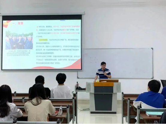 学习会上,曾庆威老师通过结合自身经历及播放相关视频的方式,为在场的所有学生骨干传达习近平总书记视察广东重要讲话精神,并对如何贯彻落实好重要讲话精神进行了动员和部署。他强调,作为班级学生骨干,更要提高政治站位,强化做好学习宣传贯彻工作的政治自觉、思想自觉和行动自觉;要狠抓落实,全体学生骨干要带着感情、带着责任、带着使命将重要讲话精神的学习宣传贯彻到工作实处,迅速掀起学习贯彻的热潮;要学深悟透,将重要讲话精神作为推进学生工作的强大动力,指导实践、引领发展,开创学生工作新局面。