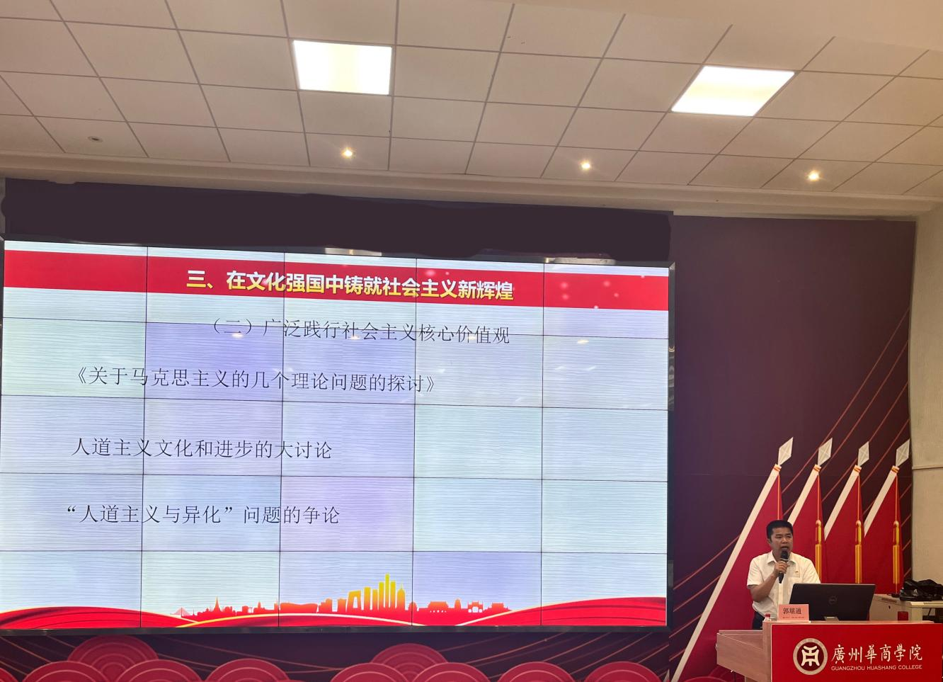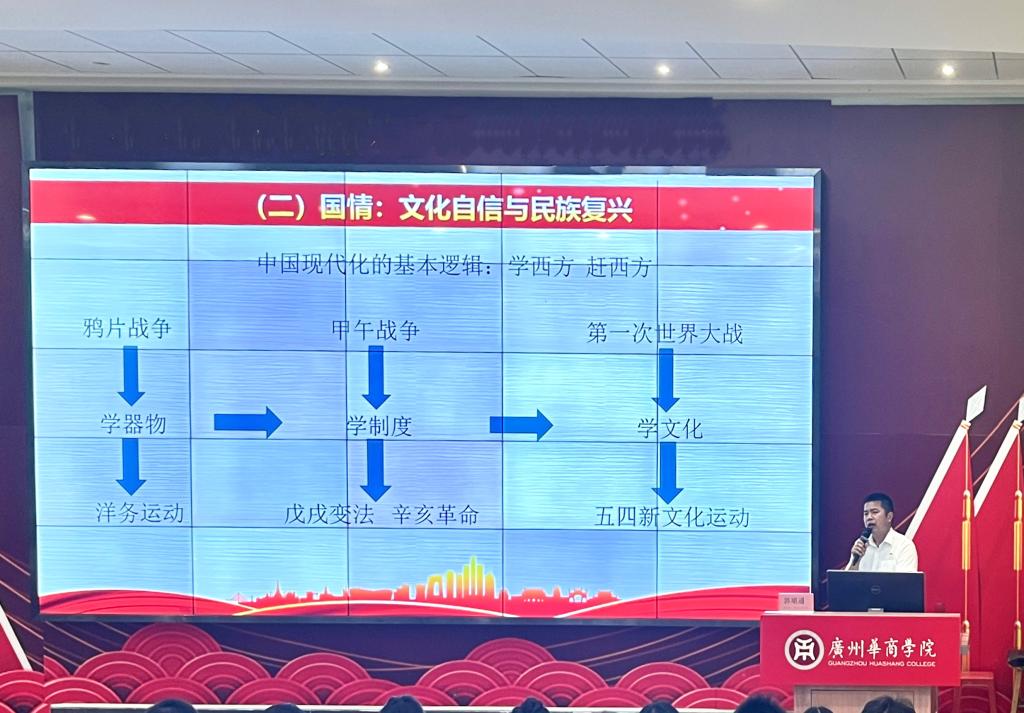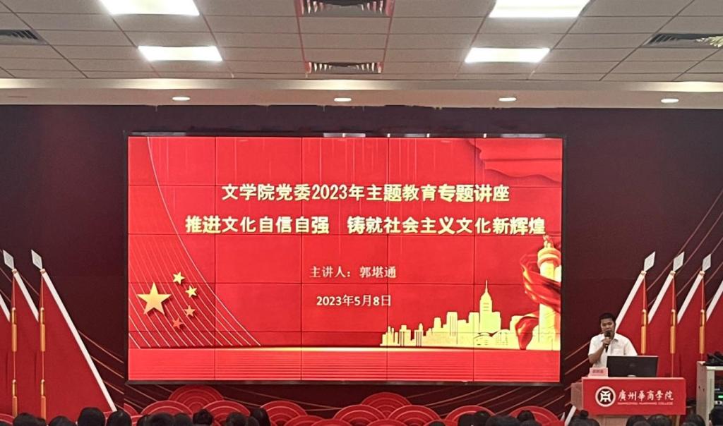 郭堪通副书记以“推进文化自信自强 铸就社会主义文化新辉煌”为主题,围绕“新时代世情国情党情的变化、文化自信自强是实现中华民族伟大复兴的强大精神力量、在文化强国建设中铸就社会主义的新辉煌”三个方面,从社会主义文化建设理论体系的基本内容、蕴含的世界观和方法论、特征、意义等方面进行了详细阐述,并结合学院实际与大家一同探讨学习,号召学院上下要以主题教育为契机,牢牢把握主题教育的总要求,从习近平新时代中国特色社会主义思想中汲取奋发进取的智慧和力量。