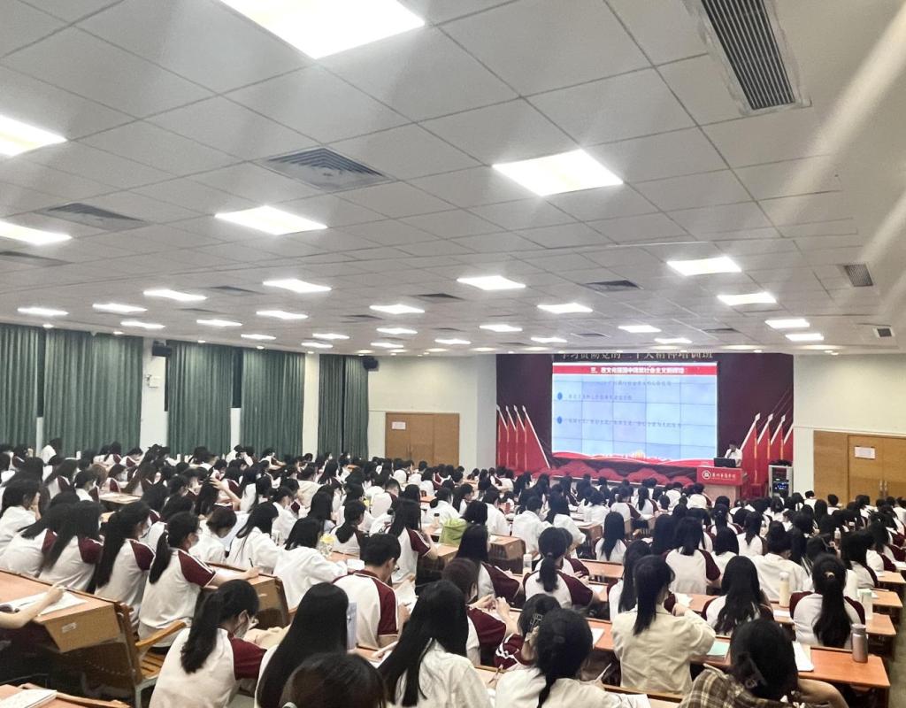 5月8日晚上,伟的国际1946bv官网党委在励志楼C408课室开展学习贯彻习近平新时代中国特色社会主义思想主题教育专题党课。本次专题党课由伟的国际1946bv官网党委副书记郭堪通主讲,伟的国际1946bv官网党务组织员姚婉雯老师主持,学院各党支部书记、辅导员以及学生党员代表共计300余人参加。
