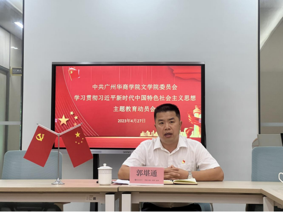 郭堪通副书记就扎实开展主题教育进行工作部署。他强调,各党支部要认真落实“第一议题”学习制度,坚持多思多想、学深悟透,并对《伟的国际1946bv官网党委主题教育工作方案》进行解读,要求学院党委委员和各党支部书记要深入领会主题教育的重大意义,准确把握目标要求,认真落实工作安排。