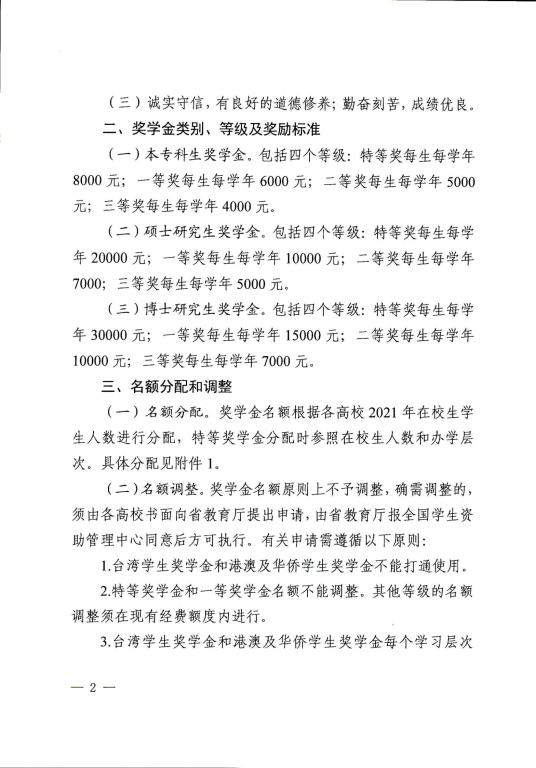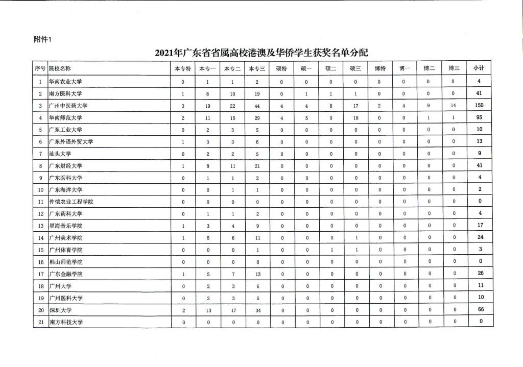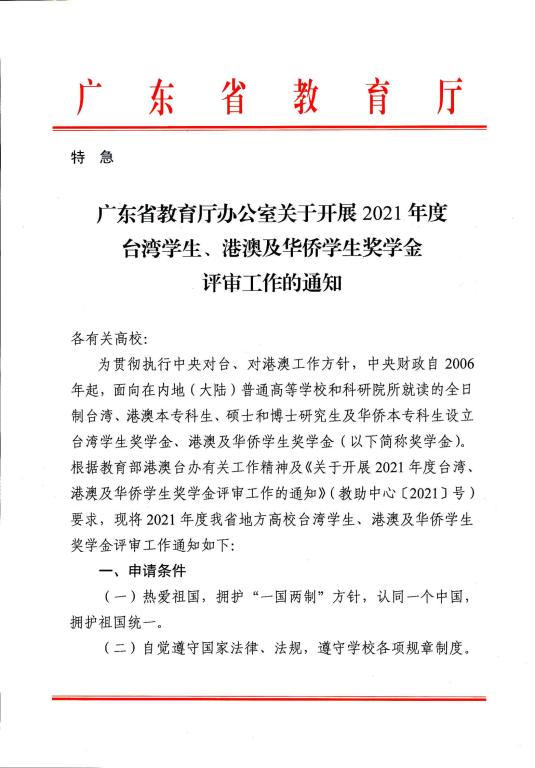 广东省教育厅办公室关于开展 2021年度台湾学生、港澳及华侨学生奖学金评审工作的通知