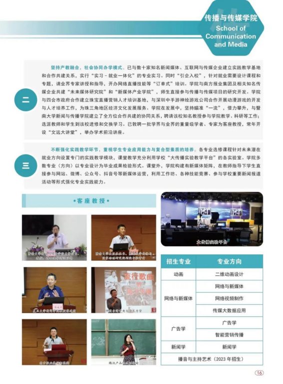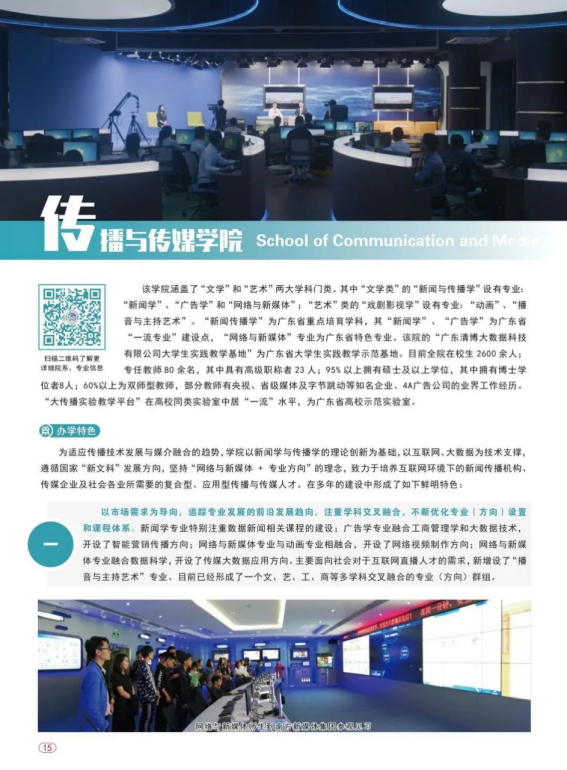 学校开设45个特色本科专业,涵盖了管理学、经济学、文学、工学、艺术学、教育学、医学等7个学科门类。国家级一流本科专业建设点1个:会计学;省级一流本科专业建设点6个:会计学、财务管理、审计学、新闻学、广告学和信息管理与信息系统;省级重点学科2个:广东省高校特色重点学科——会计学,广东省高校重点培育学科——新闻传播学。