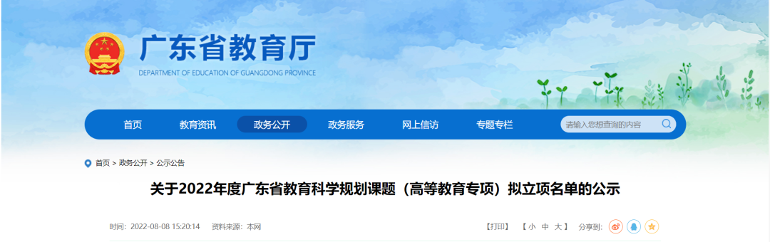 近日,省教育厅发布了关于2022年度广东省教育科学规划课题(高等教育专项)拟立项名单和2022年广东省普通高校科研平台和科研项目拟立项名单的公示。