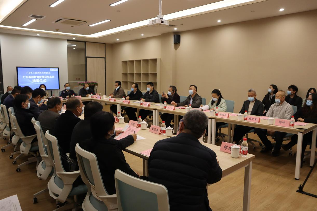 郭银华执行校长、支戈壁副校长、王列耀副校长和扈中平院长共同为广东基础教育发展研究基地揭牌。