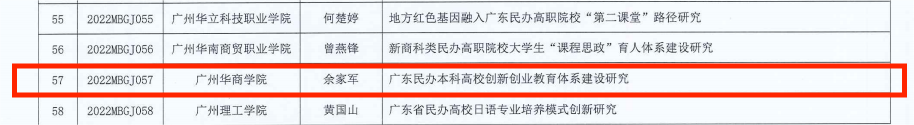 根据《关于组织开展广东省高等教育学会民办高等教育专业委员会2022年度课题申报工作的通知》等相关文件要求,经学校遴选推荐、省教育厅审核、评审、公示及异议复审等环节,我们余家军老师主持的“广东民办本科高校创新创业教育体系建设研究”项目获广东省高等教育学会民办高等教育专业委员会2022年度研究课题立项。
