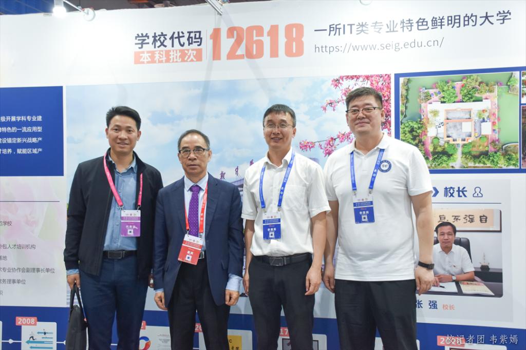 我们参展工作人员热情接待前来参观的领导、嘉宾,并详细讲解了我们探索人才培养实践模式、“以产促赛”学科竞赛成果、数字经济产业等特色培养及发展模式。期间,吸引了众多人员前来观展,面对观展人员的询问,现场工作人员一一耐心解答,展览氛围热闹融洽。