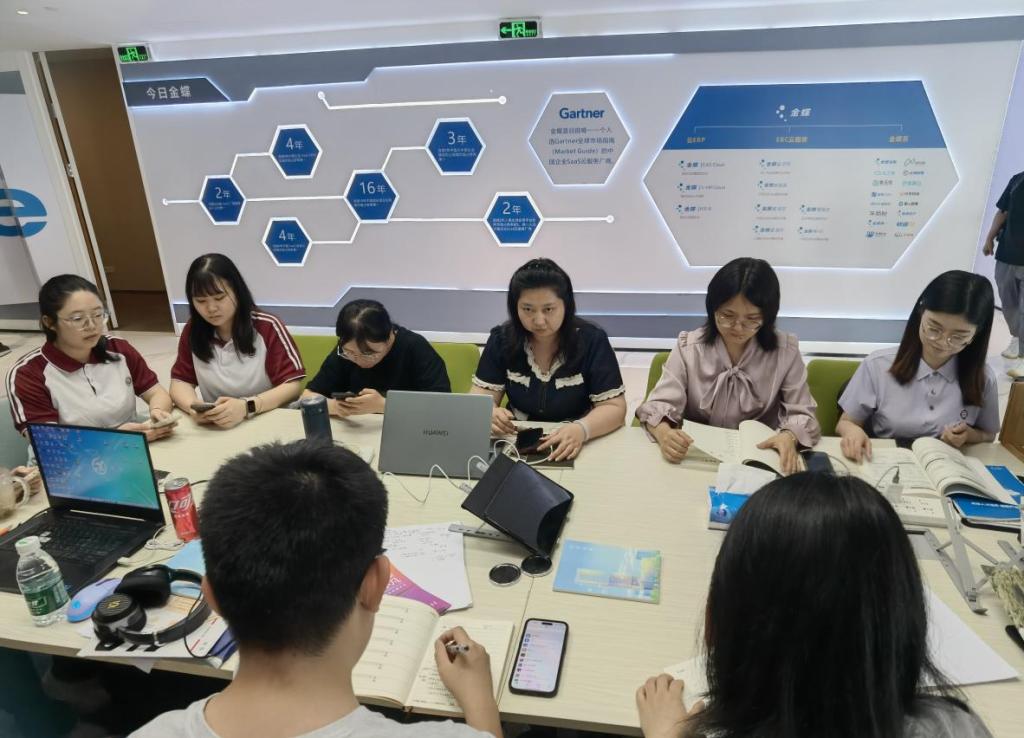 在随后的座谈会上,双方就续签实习基地协议达成了一致。双方在友好交流的氛围中,共同探讨了如何优化实习流程、提升实习质量,并针对实习生的培养计划、岗位分配以及职业发展规划等方面提出了具体的改进建议。金蝶方面表示,将继续为华商学子提供多样化的实习岗位和专业的指导,帮助学生更好地适应职场环境,提升实践能力。通过此次协议的续签,双方的合作将更加紧密,为学生创造更多的学习和成长机会,共同推动校企合作迈向新的台阶。