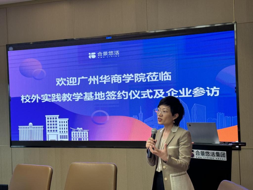 签约仪式结束后,合景悠活集团人力资源副总监汪丽萍对集团概况及产品进行了详细介绍。她提到,合景悠活集团在物业管理、商业运营等领域成绩斐然,不断拓展业务边界,创新服务模式。这些介绍让师生们对企业的业务范围和市场竞争力有了更清晰的认知。