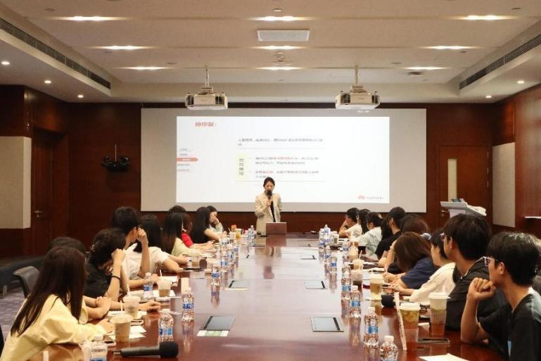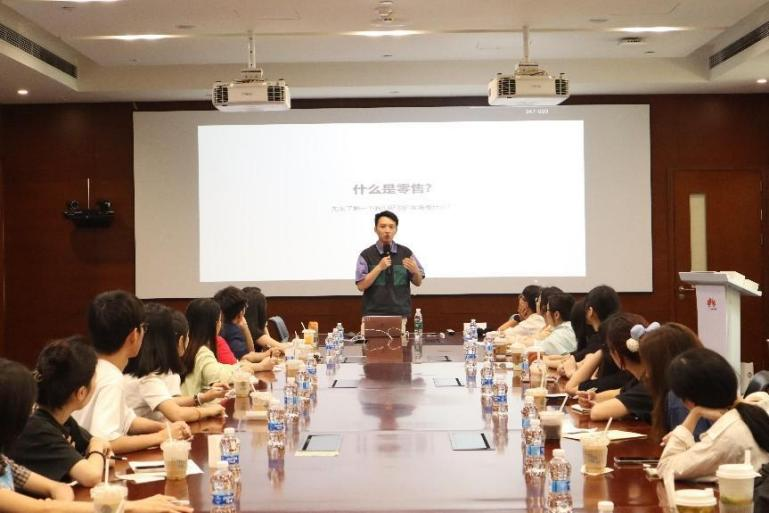 参观基地后,新苗班学员移步至华为欧洲小镇K区会议室,开展企业授课的第二次学习。华为广东终端广州区域零售经理王庆与华为广东终端广州区域人力资源经理江雪分别讲授了《零售行业洞察》和《简历制作与面试技巧进阶》课程。现场互动热烈,学员们收获颇丰。
