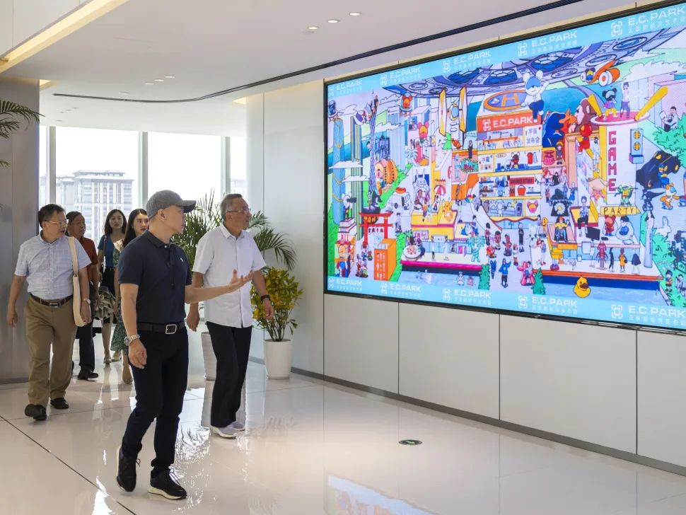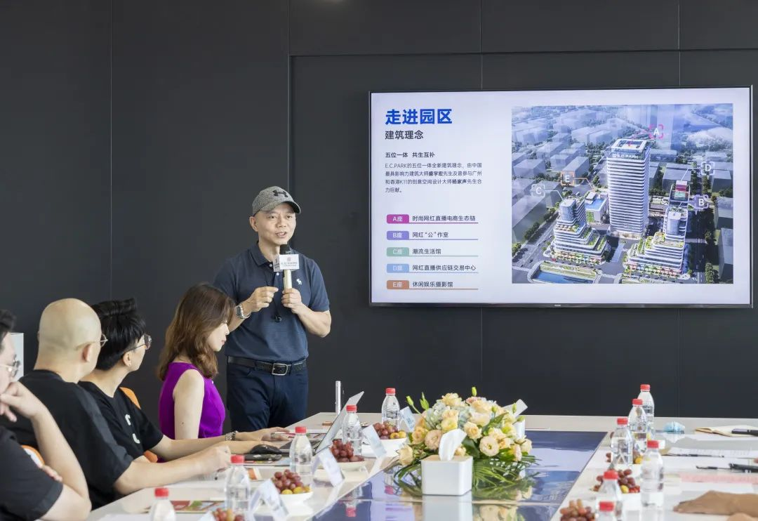 广州云端共享实业有限公司董事长吴智荣、董事CEO汤浩、广州大道文化创意有限公司董事长高锐、抖快点直播商学院执行院长潘院等企业高管代表热情接待我们张捷副校长等一行。在企业代表的带领下,学校领导一行参观E.C.Park园区风情各异的建筑,了解到园区布局以及先进新潮的设计理念,对园区五座建筑对应的功能有了初步认识。