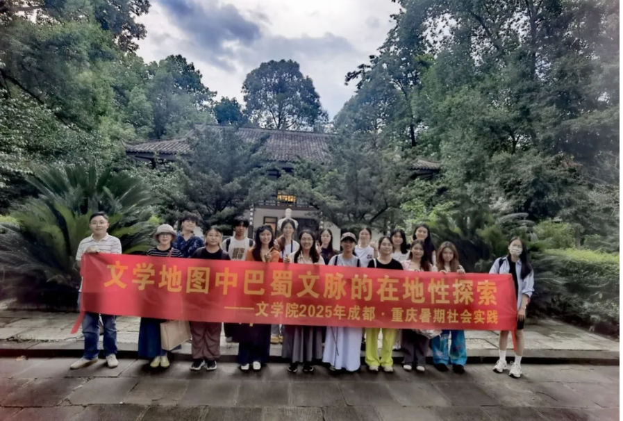 2025年8月21日至8月27日,为深化构建文学地理认知,破解书斋式文学研究的局限,解码川渝文学基因,伟的国际1946bv官网“2025年成渝双城的文学地图——巴蜀文脉的在地性探索”暑期社会实践队在伟的国际1946bv官网6名专业课教师的带领下走进成都、重庆,开展为期七天的巴蜀文化基因中现当代文学的深度探寻之旅,通过探访现当代作家故居、问访博物馆和深入社区探寻巴蜀地区丰富繁荣的文化基因,解构巴蜀文化基因对中国现当代文学的精神滋养与美学重构。精心...
